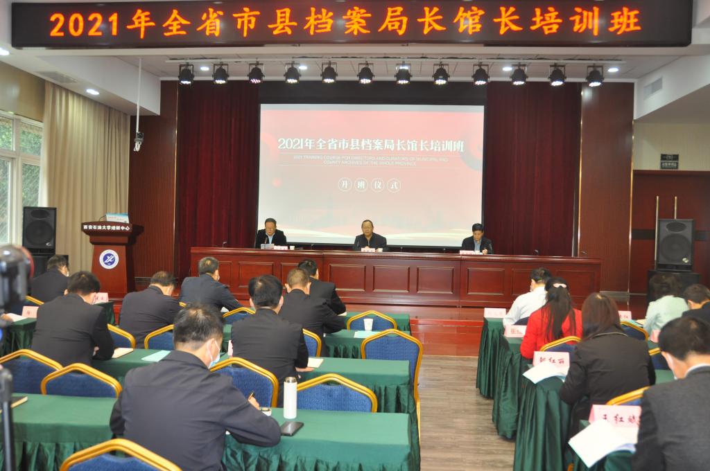 1011日上午,2021年全省市县档案局长馆长培训班在我校培训中心顺利开班。省委副秘书长、省档案局局馆长高新民,副校长杨战社出席开班仪式。仪式由陕西省档案局二级巡视员、人事处处长王展志主持。来自全省各市、县档案局馆长及省档案馆干部80余人将参加本次培训。