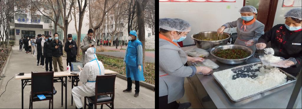 随着疫情形势的不断严峻,长庆班学员、恒大扶贫工作人员、第三方服务工作人员、国际教育学院留学生及明德校区驻守单位工作人员220余人核酸检测不能再前往雁塔校区检测,学院党政领导主动与学校防控办、校医院对接,积极筹备所需设施。在校领导高度重视下,校防控办克服重重困难,明德校区实现专门检测。几天来的核酸检测过程中,学院值班干部全力配合,全程指挥协调,在明德校区已先后完成全员核酸检测7次。按照学校防控办的指令要求,学院还义不容辞地为明德校区隔离人员、后勤工作人员、保卫人员等近50余人提供了工作餐,解决了他们的饮食之忧。同时,向广大学员、学生发出疫情防控号召,鼓励他们积极参与社区防疫,增强使命担当意识,争做新时代好公民、好青年。