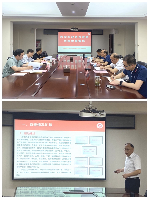 6月7日下午,陕西省人力资源和社会保障厅考核组对我校专业技术人员继续教育基地进行了实地考核认证。考核专家组一行三人,由省人社厅专技处三级调研员王锋带队。taptap点点188院长谈建勤主持汇报会,副院长吴民生代表基地汇报工作,培训部、信息与技术保障部(培训质量评价办公室)相关同志参加会议。