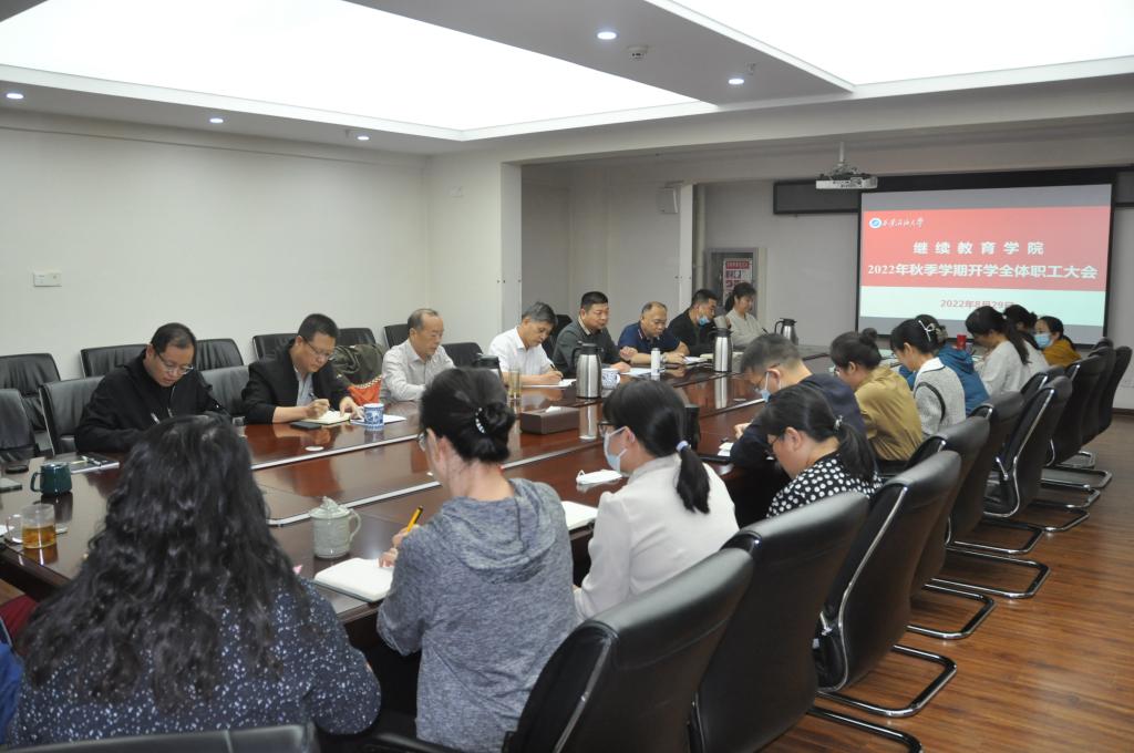 耿岭传达了学校近期有关会议精神,并从不断提升党建工作质量、严格落实意识形态工作责任制、加强作风建设和做好稳定安全工作等四个方面进行了再动员、再要求,确保全年工作任务顺利完成。谈建勤从持续规范学历教育并保持稳增规模、培训教育提质增效、管理服务工作不断推进“三化”、强化基础工作、加强对外合作交流以及积极营造团队文化等六个方面提出具体思路与要求。副院长吴民生、刘小波分别对各自分管部室的暑期工作进行了总结,并对新学期工作做了具体安排。