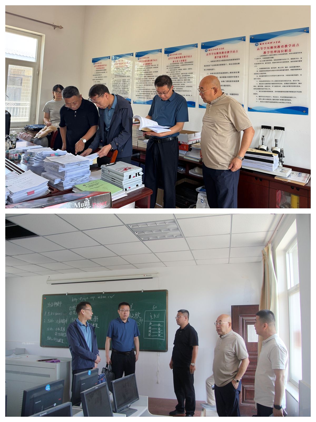 在榆林长城理工学校校外教学点,学院通过听取汇报、查阅资料、实地考察等方式,对教学点的教学管理、学生服务、考试组织等情况进行全面检查,并强调教学点要严格规范办学,强化质量意识,确保继续教育“规范、有序、高质量”发展。座谈会上,双方还就专业技术人员继续教育基地建设及同力申硕工作进行了探讨。