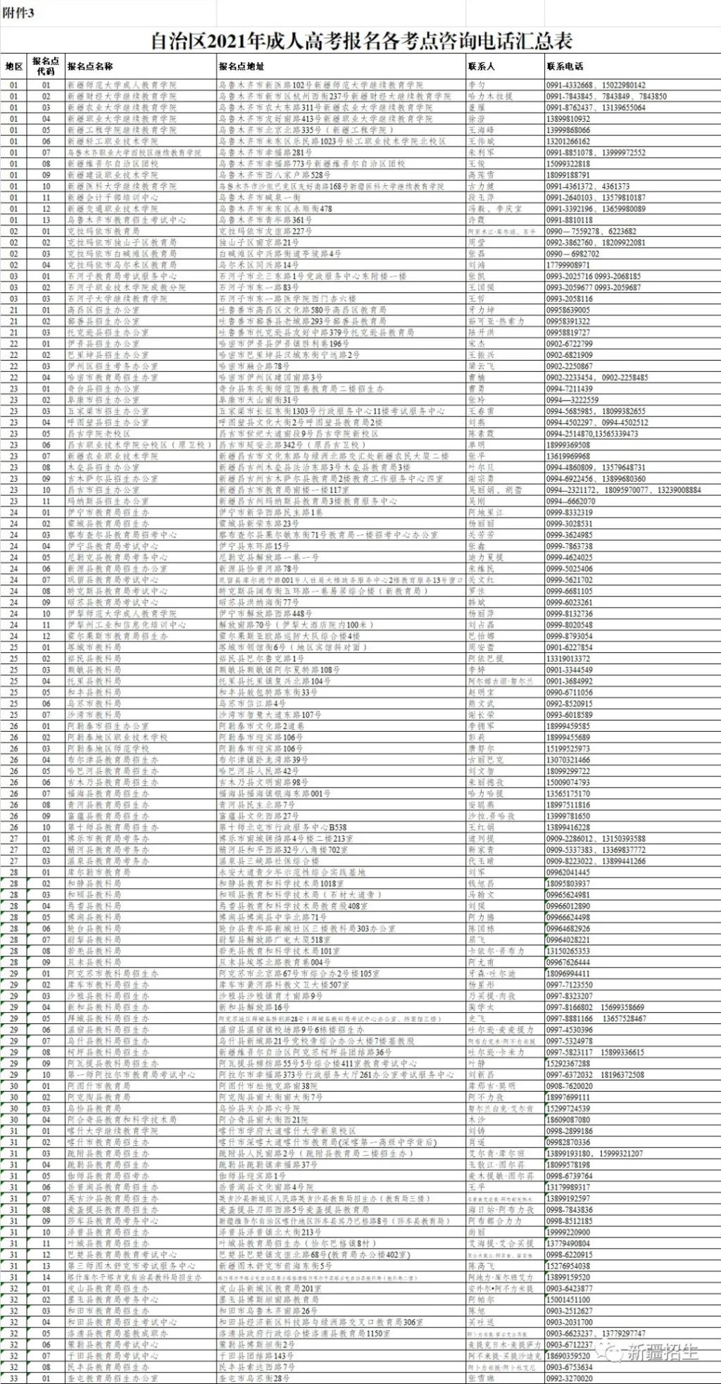 获取我区今年成人高考更多信息,考生可登录新疆教育考试院官方网站“新疆招生网(http:// www.xjzk.gov.cn)”查看《关于做好2021年新疆维吾尔自治区成人高校考试招生工作的通知》(新招委〔202114号)详细内容。报名期间,考生如遇疑问,可在工作时间拨打所在地、州、市招生考试机构、报考资格审核点咨询电话(详见网上报名系统报名点信息)咨询。