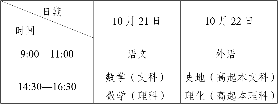 (四)考生自行在网上打印准考证的时间为10月16日-10月22日
