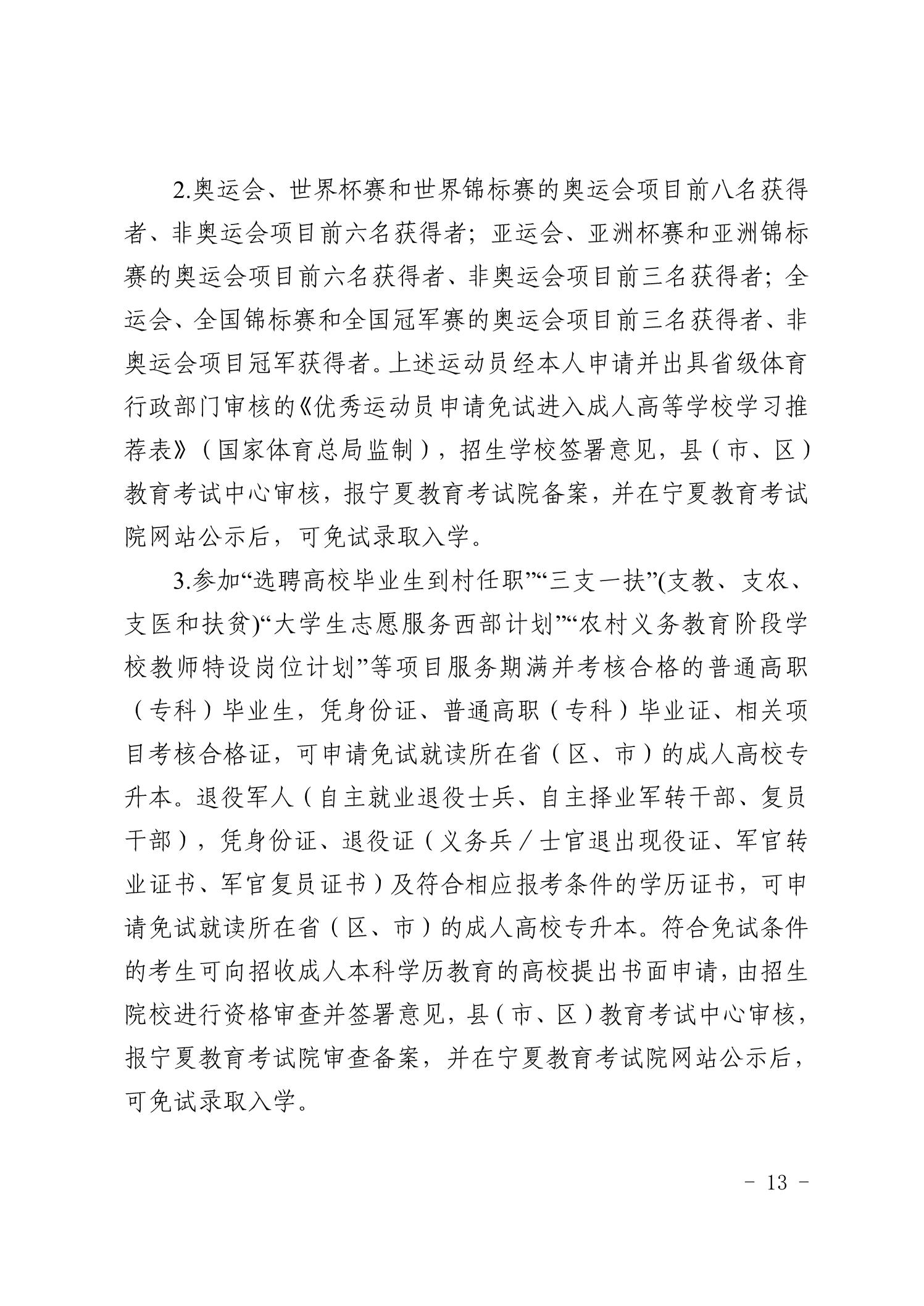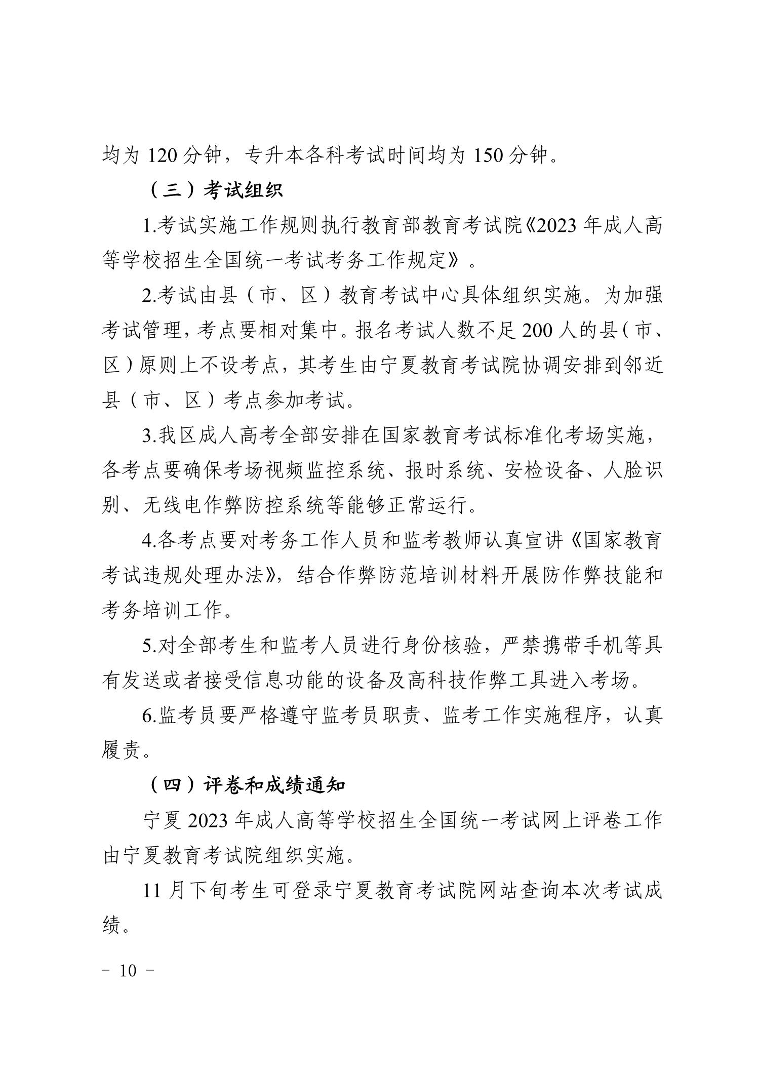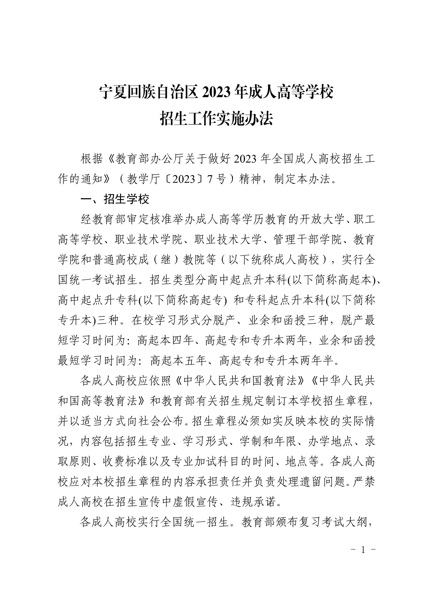 宁夏回族自治区2023年成人高等学校招生工作实施办法