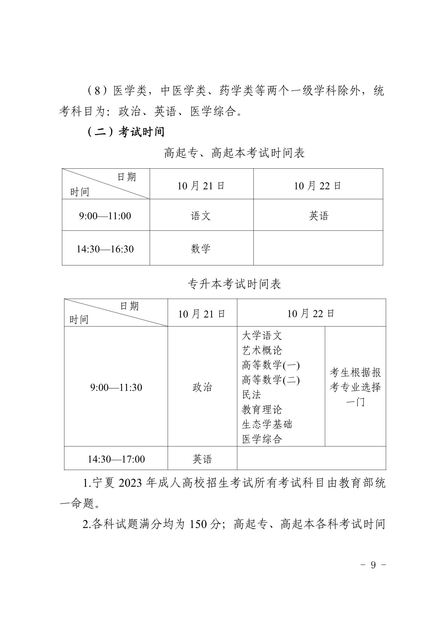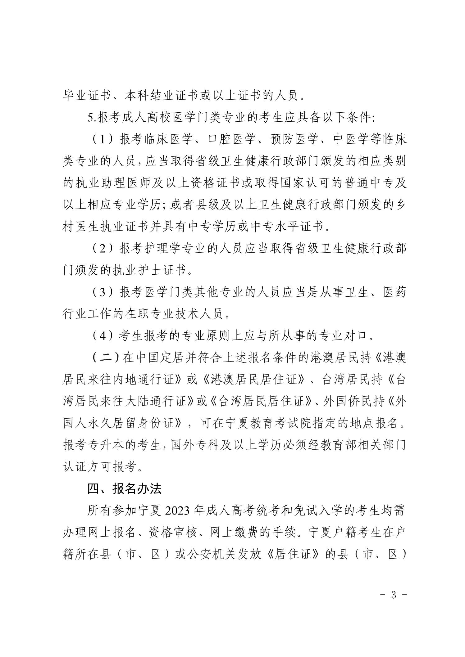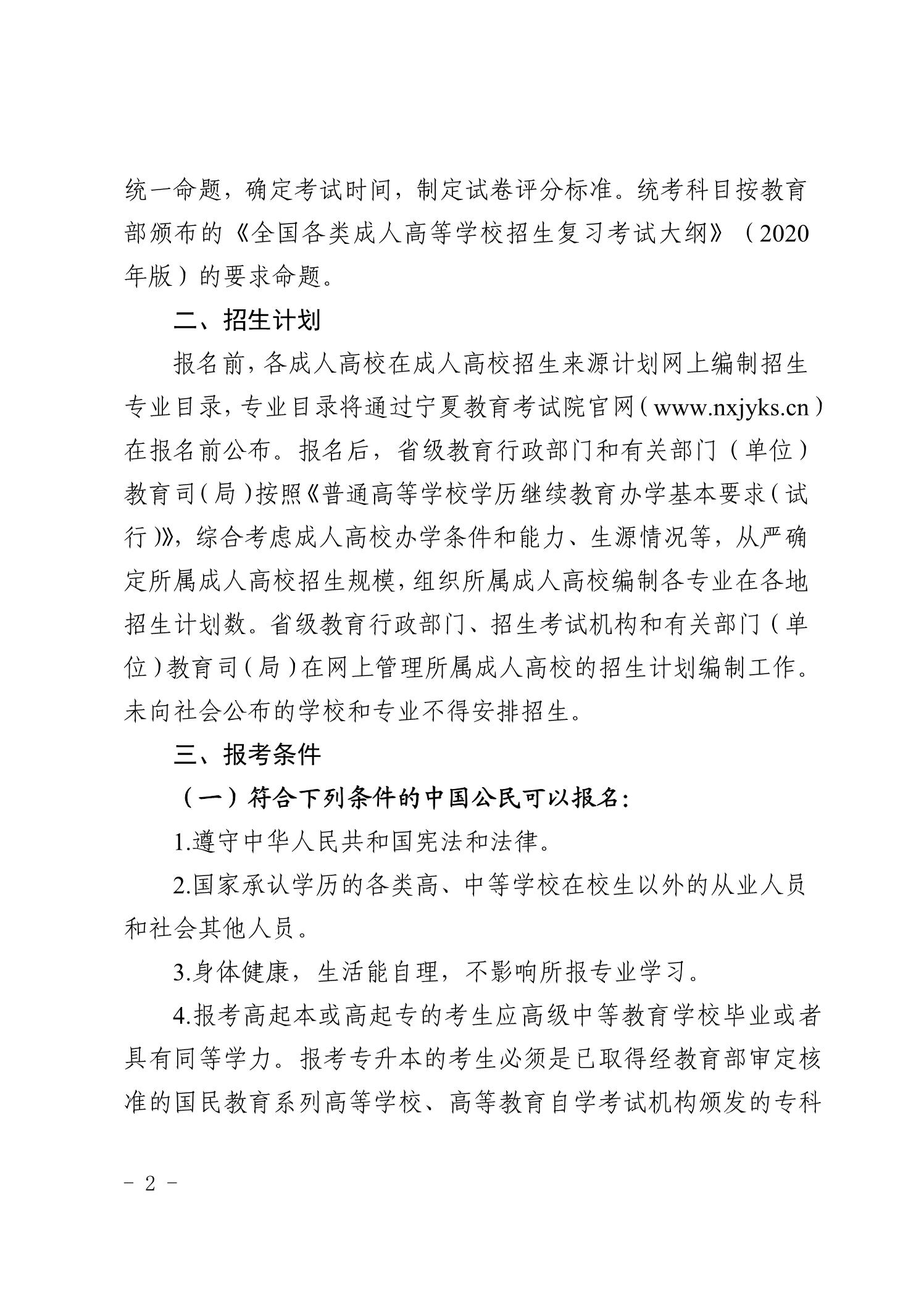 宁夏回族自治区2023年成人高等学校招生工作实施办法
