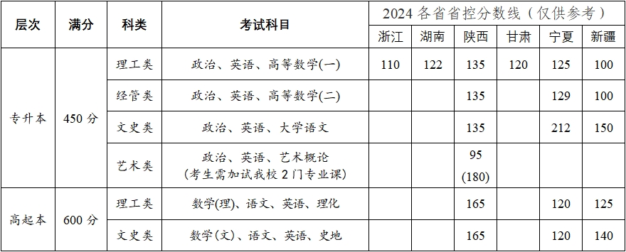 注:各科目按照《全国各类成人高等学校招生考试大纲(2024年版)》的要求命题。
