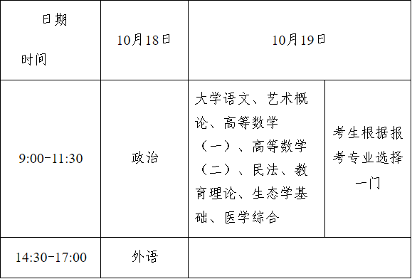 专升本考试时间表(每科考试150分钟)