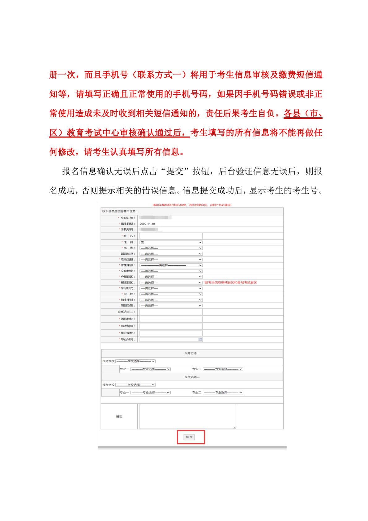 3.未满18周岁的考生填写报名信息后,根据县(市、区)教育考试中心的要求携带本人身份证和高级中等教育毕业证书或同等学力证明进行现场审核。现场审核通过后,考生于9月5日12:00前上传相关资料的扫描件。