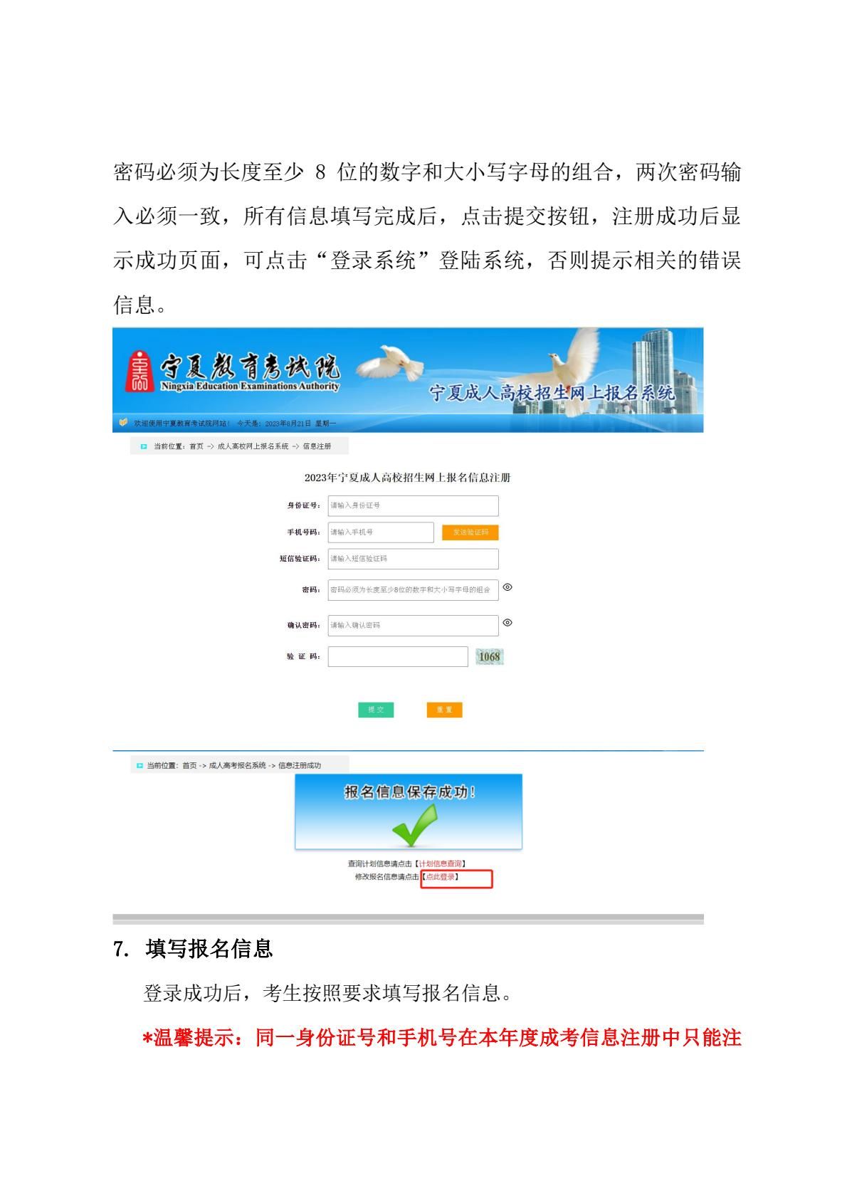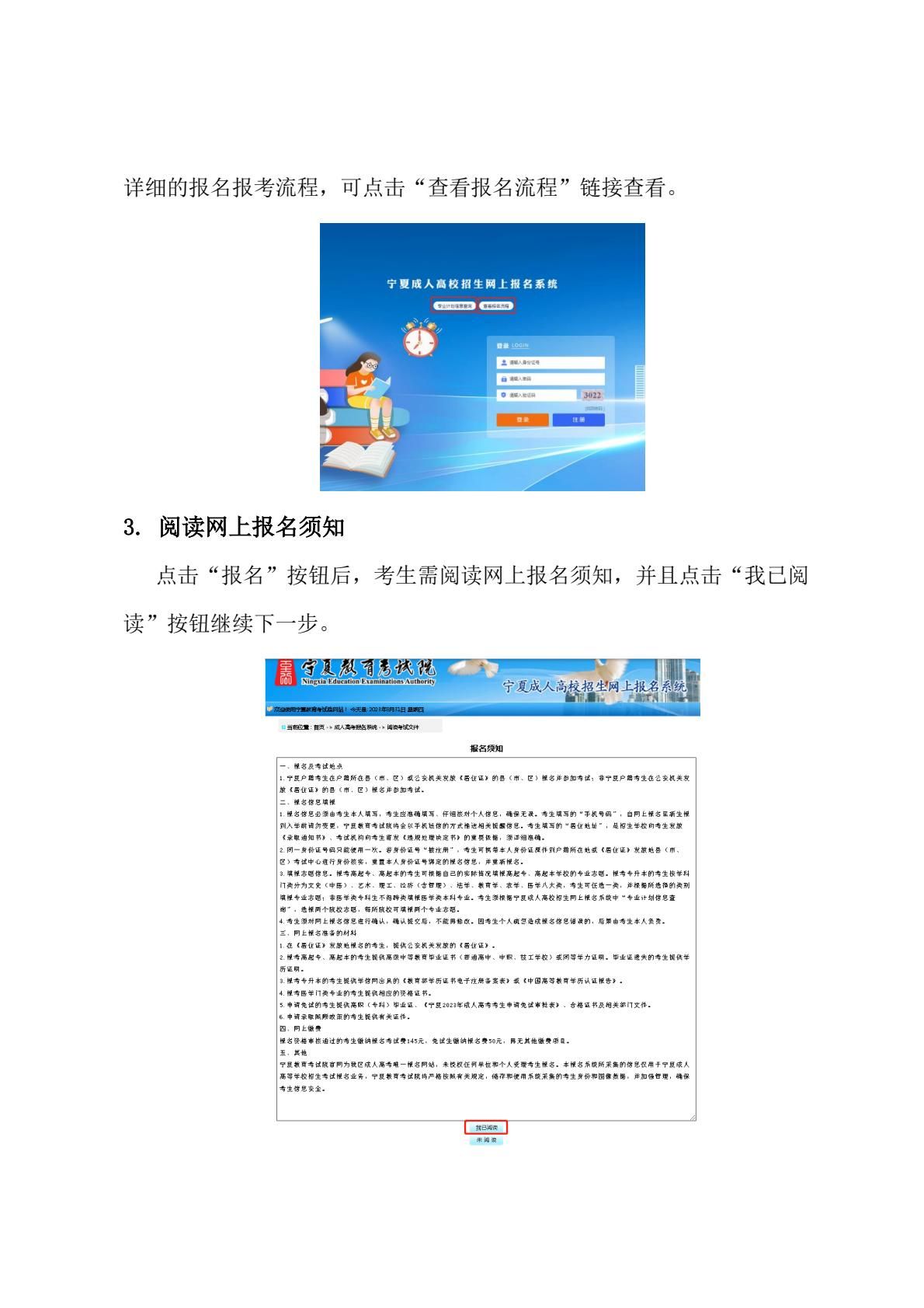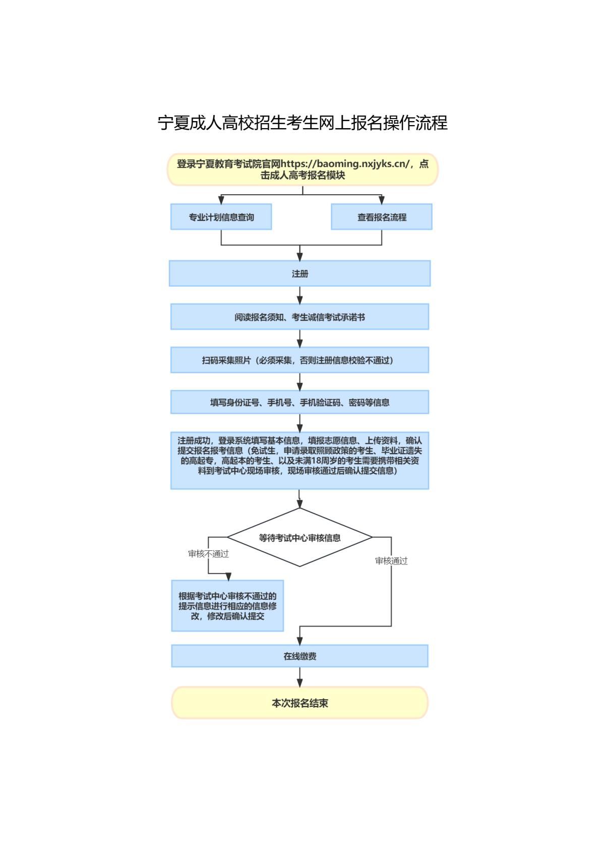 1.网上注册。考生登录宁夏成人高校招生网上报名系统(https://baoming.nxjyks.cn)进行注册,注册时采集照片必须是本人免冠正装照。