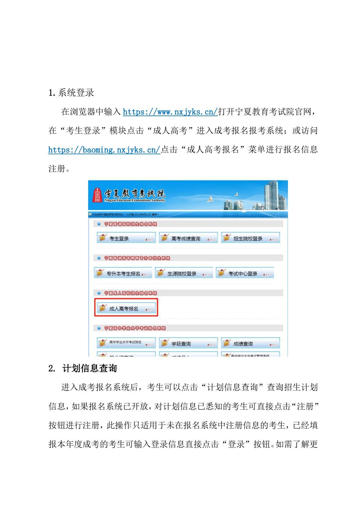 1.2025年10月13日9:00至10月19日17:00,考生登录宁夏成人高校招生网上报名系统打印准考证。