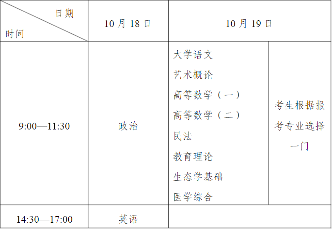(2)艺术类,统考科目为:政治、英语、艺术概论。