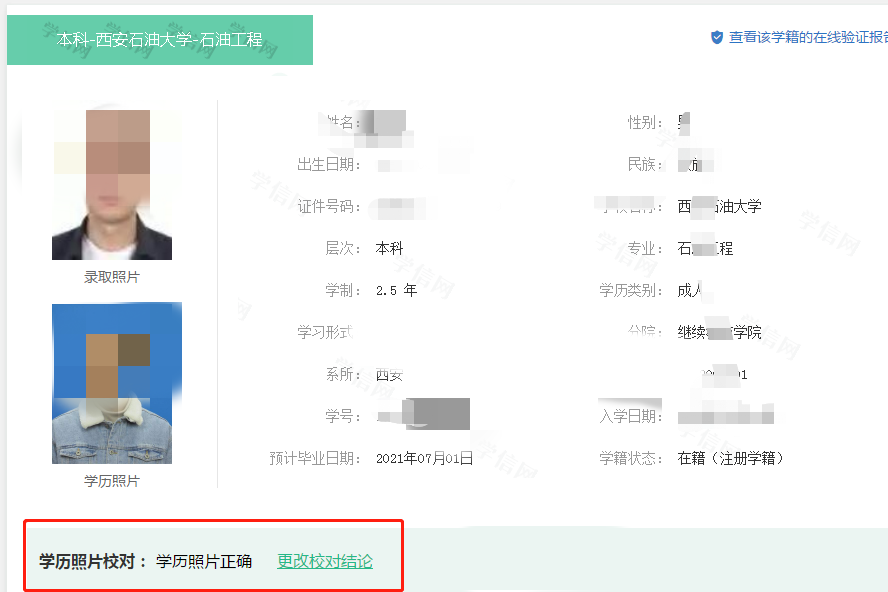 3. 如果图像信息有误,请及时联系学籍管理老师进行处理。