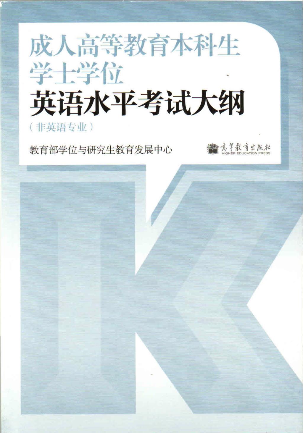以学位中心主编、由高等教育出版社发行的《成人高等教育本科生学士学位英语水平考试大纲》为依据,由考生自行自愿购买。