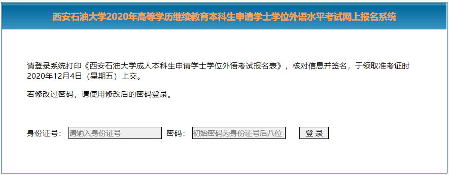 输入身份证号和密码登录系统,若在报名时修改过密码,请使用修改过的密码登录,否则使用初始密码登录。