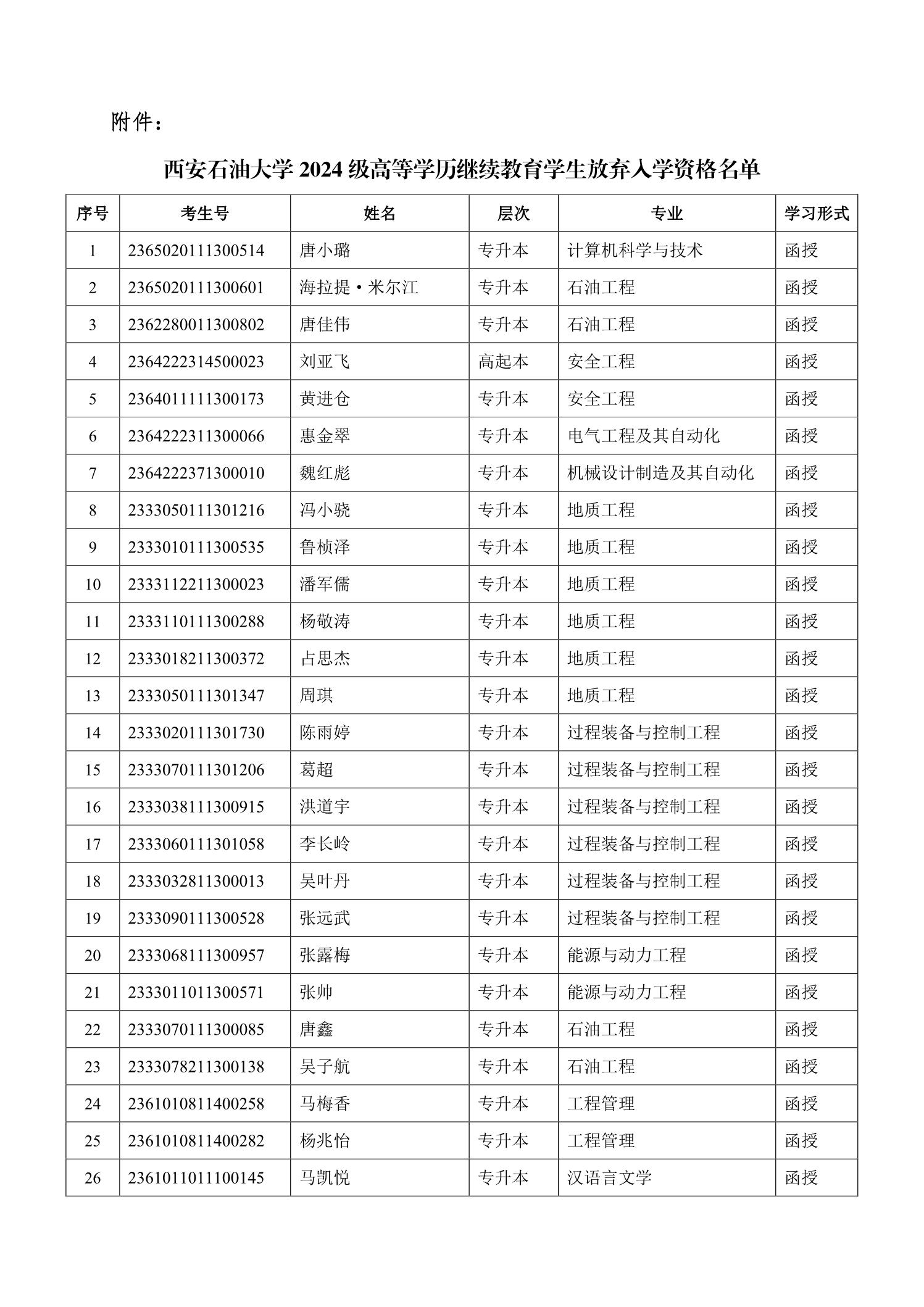 【已结束】关于2024级高等学历继续教育新生放弃入学资格的公示