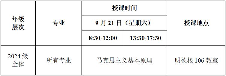 面授教学时间:2024年9月至2025年1月。课程安排将发布至“青书学堂”APP,第一次线下教学课程表见附件1,后续教学课程每周发布。学生可在“青书学堂”APP“我的-我的课表”查看课程安排。
