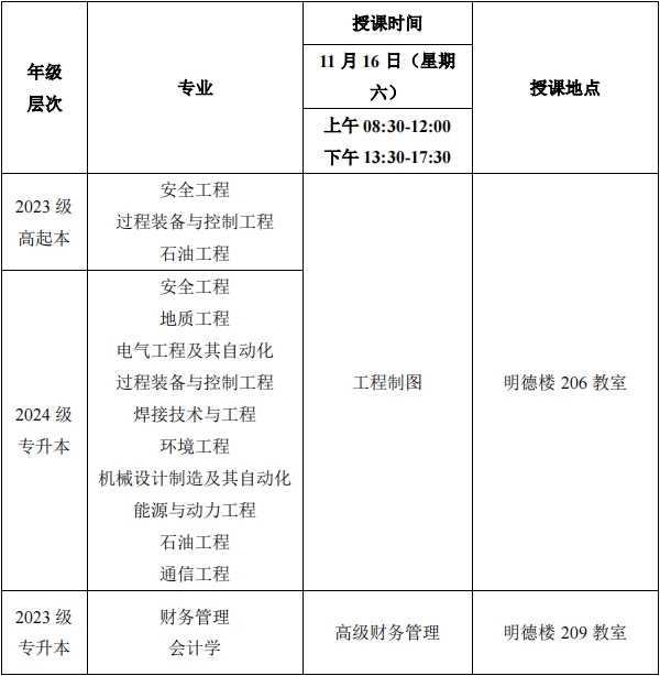 2024年秋季学期第四次(11月16日)线下教学课程表