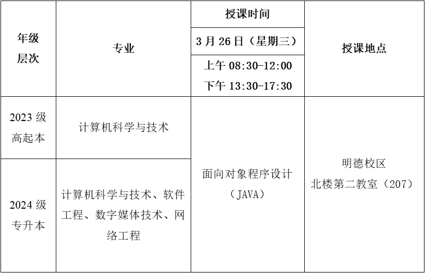 2025年春季学期第四次(3月26日)线下教学课程表