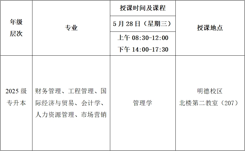 2025年春季学期第十二次(5月28日)线下教学课程表