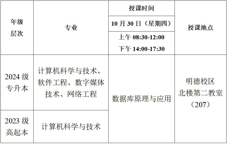 2025年秋季学期第五次(10月30日)线下教学课程表