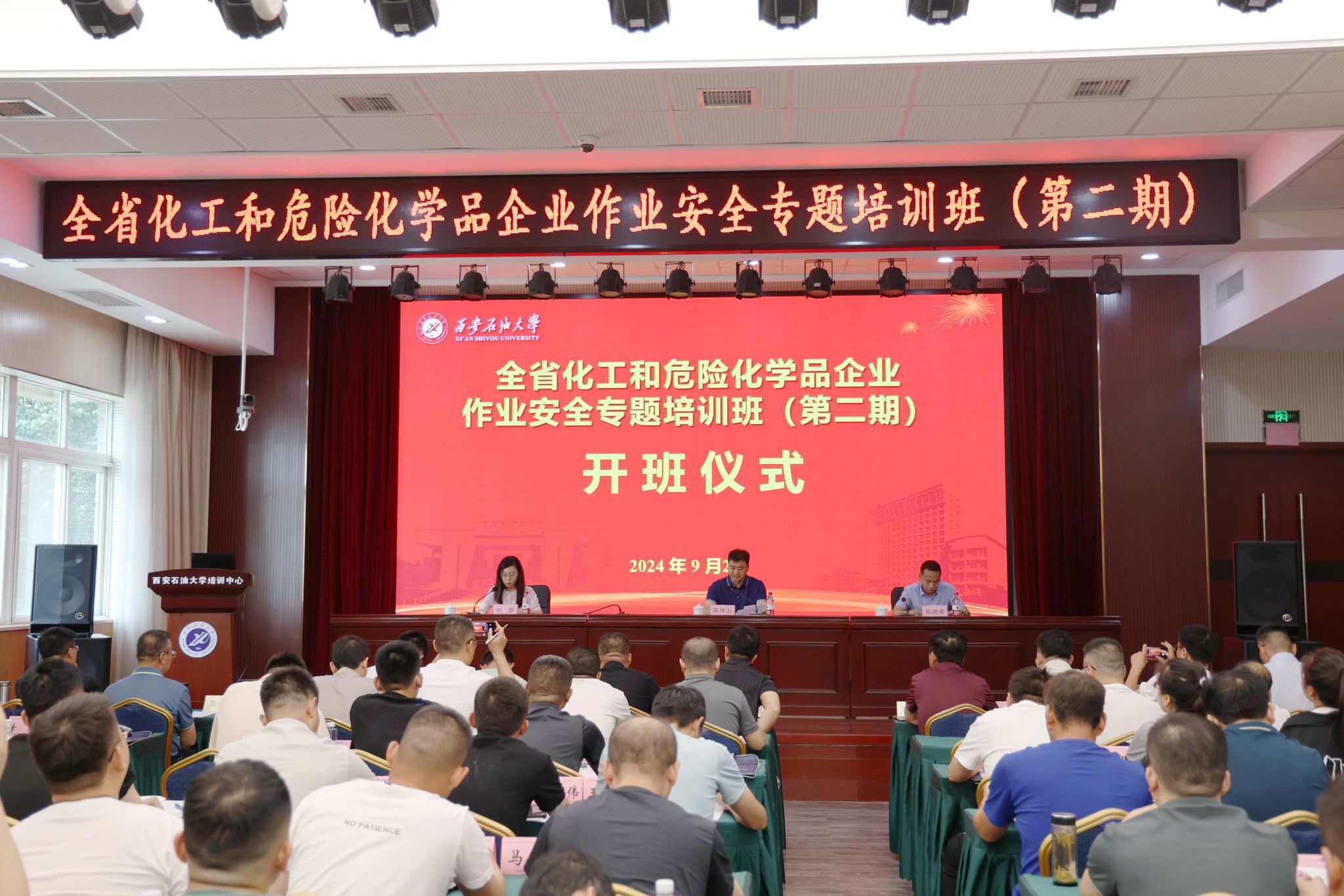 9月2日,全省化工和危险化学品企业作业安全专题培训班(第二期)在我校明德校区顺利开班。陕西省应急管理厅(以下简称“省应急厅”)危化处处长陈坤山、我校taptap点点188党总支书记张凌寒与来自全省的120名化工和危险化学品生产企业负责人及安全管理人员参加仪式。仪式由省应急厅危化处副处长刘静主持。