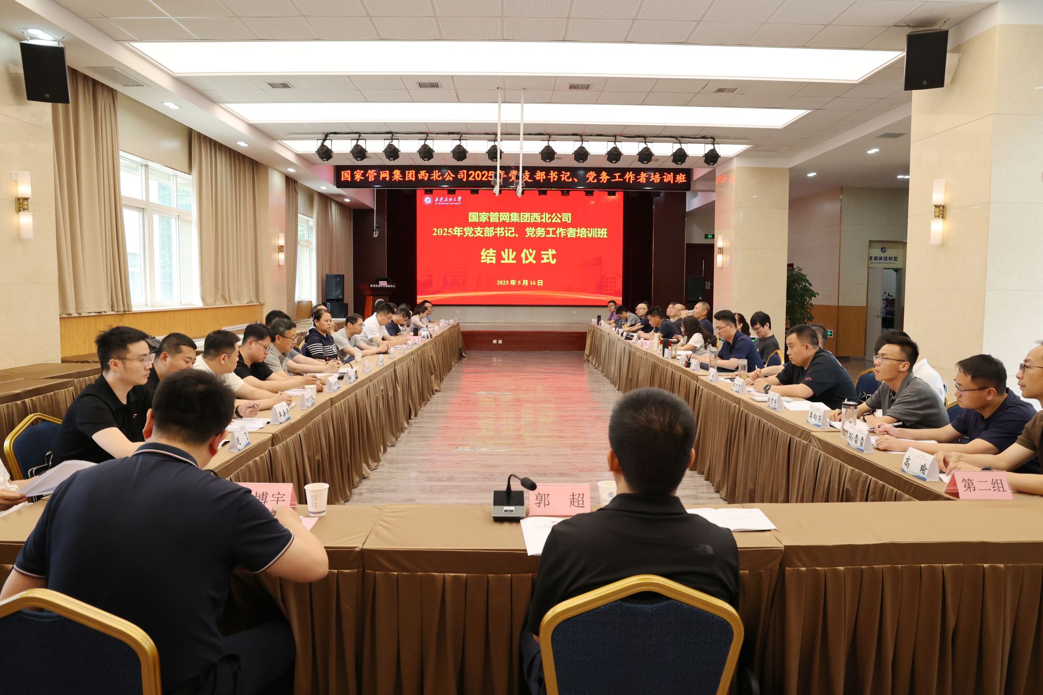 5月16日下午,国家管网集团西北公司(以下简称“公司”)2025年党支部书记、党务工作者培训班结业仪式在明德校区报告厅举行。公司党委组织与宣传部部长郭超以及来自公司本部及所属单位党支部的45名支部书记、党务工作者参加结业仪式。仪式由公司党委组织与宣传部副部长叱博宇主持。