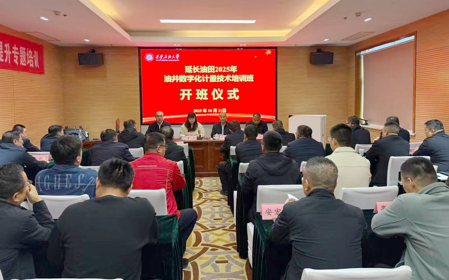 10月21日下午,由延长油田股份有限公司(以下简称“油田公司”)主办、我校承办的“2025年油井数字化计量技术培训班”在延安顺利开班。油田公司各采油厂、各分公司作业区的生产业务骨干和技术计量人员参加培训。